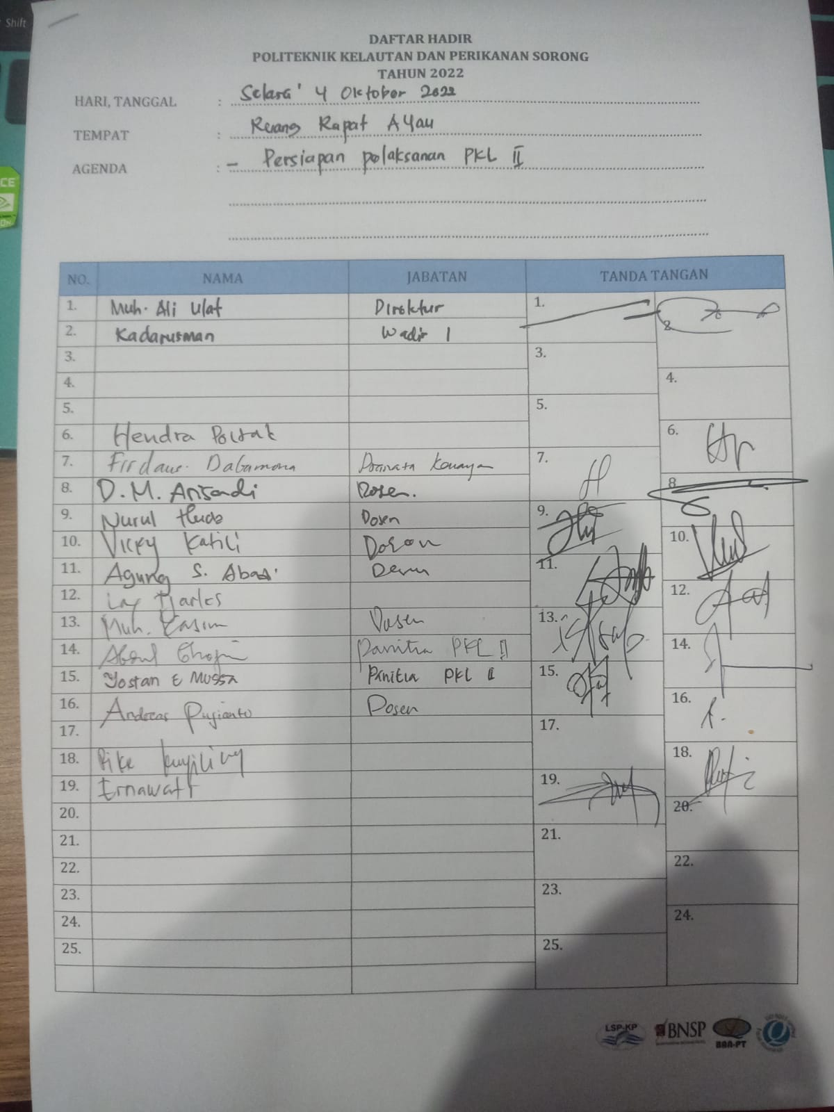 File Daftar Hadir: