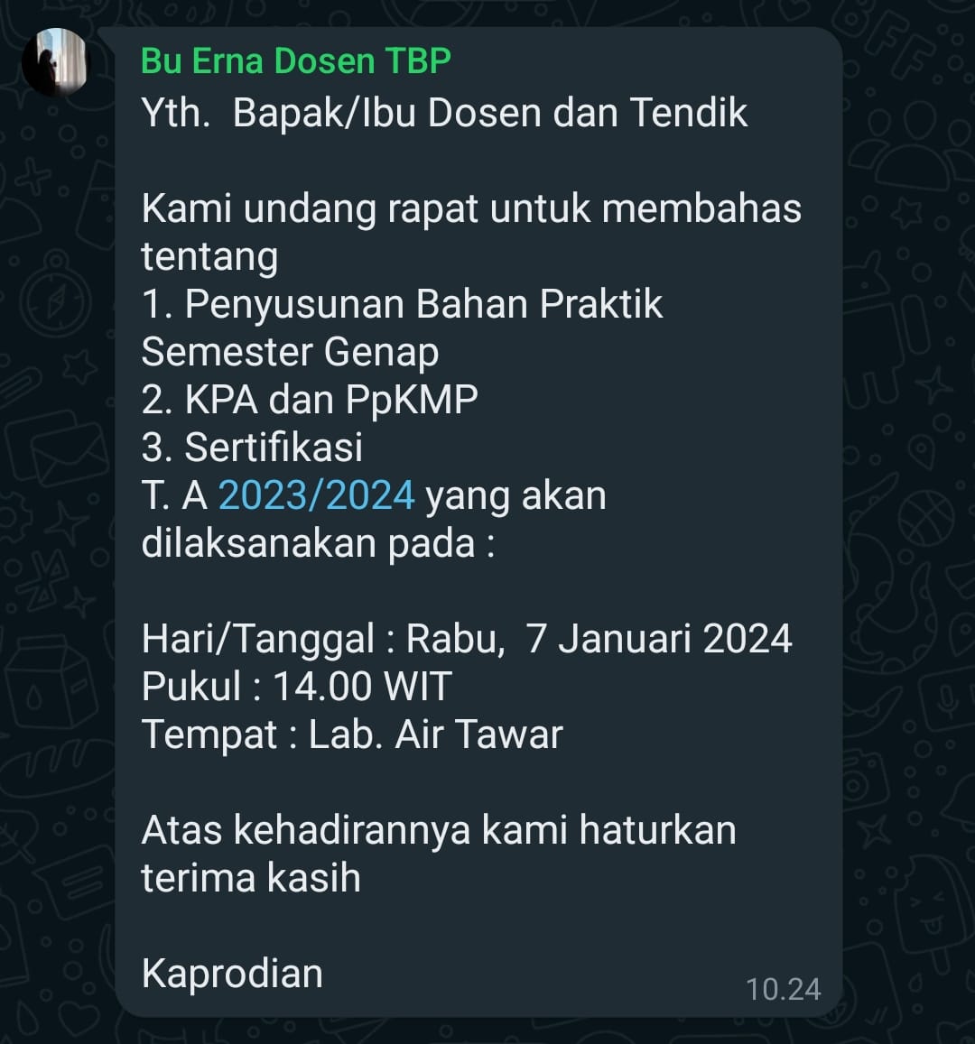Rapat Tentang Bahan Praktikum, PPKMP, KPA T.A 2023/2024 :
