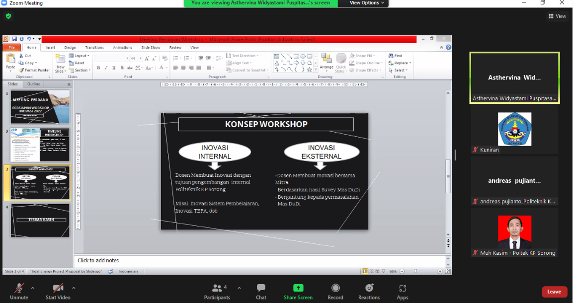 rencana workshop yang akan dilaksanakan pada Kamis, 17 Maret 2022 (Penelitian)